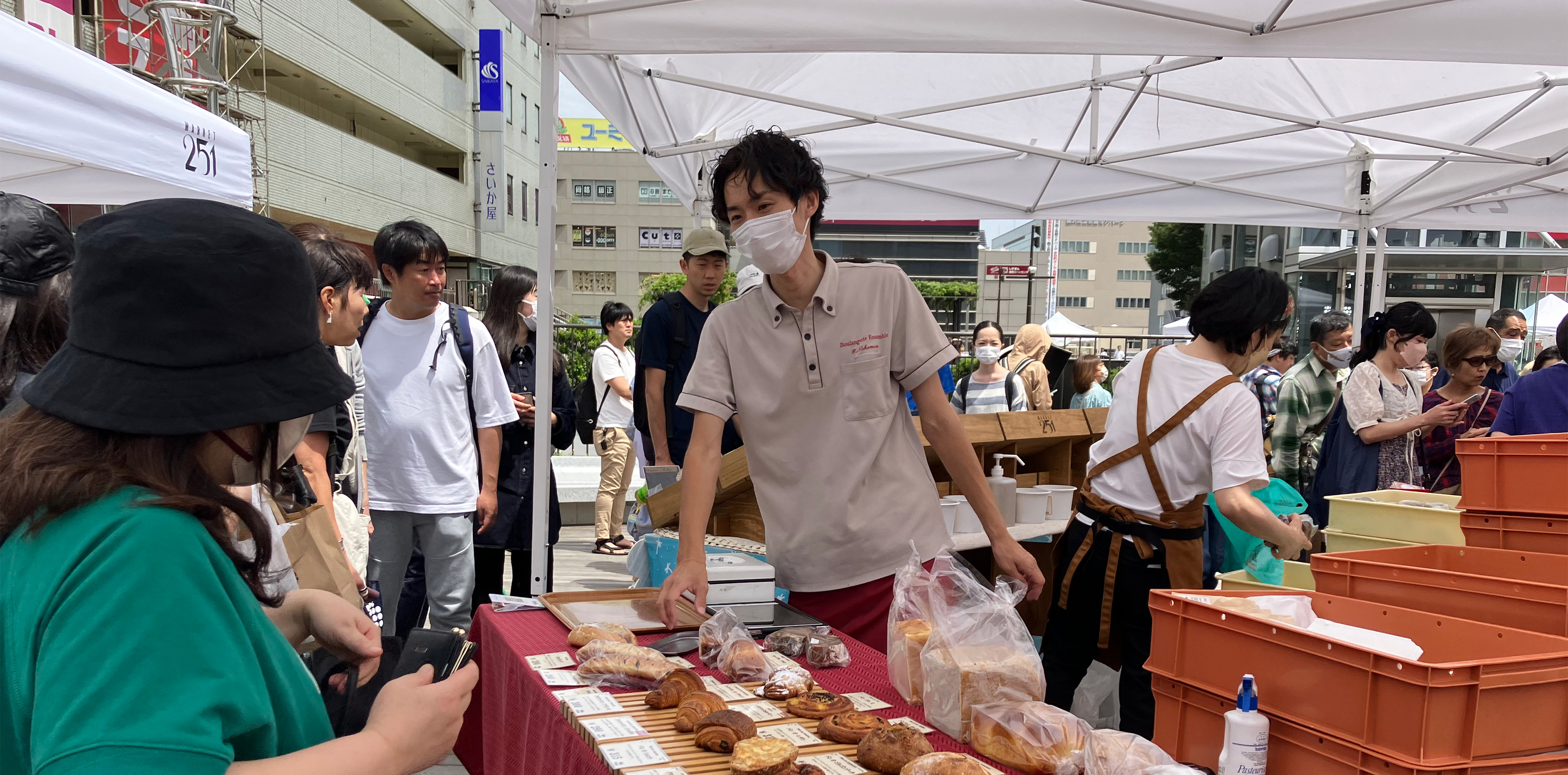 ある時、増田さん(角若松代表)が店に来たんです。「北口でイベントをやりたい」と。駅前広場の改装は確か4年前。とても綺麗になったのですが、あの場所はこれといった活用がされていません。たまに開催されるのは金魚すくいなど、地方色の強いイベント程度。横浜に行けばクラフトビールフェスがあって、グリーンルームがあって、それに対して藤沢にはちょっとやるせなさを感じます(苦笑)。そんな中で「いいイベントを作りたい」とお声がけいただき、すぐに参加を決めました。来年またブレッドマーケットが予定されているので、それに向けたパンを考えているところです。そのときには、チーズとワインがあると嬉しいですね。パンを持ち帰って食べるのではなく、その場で一緒に食べることで、場所とともにパンの思い出ができるから。