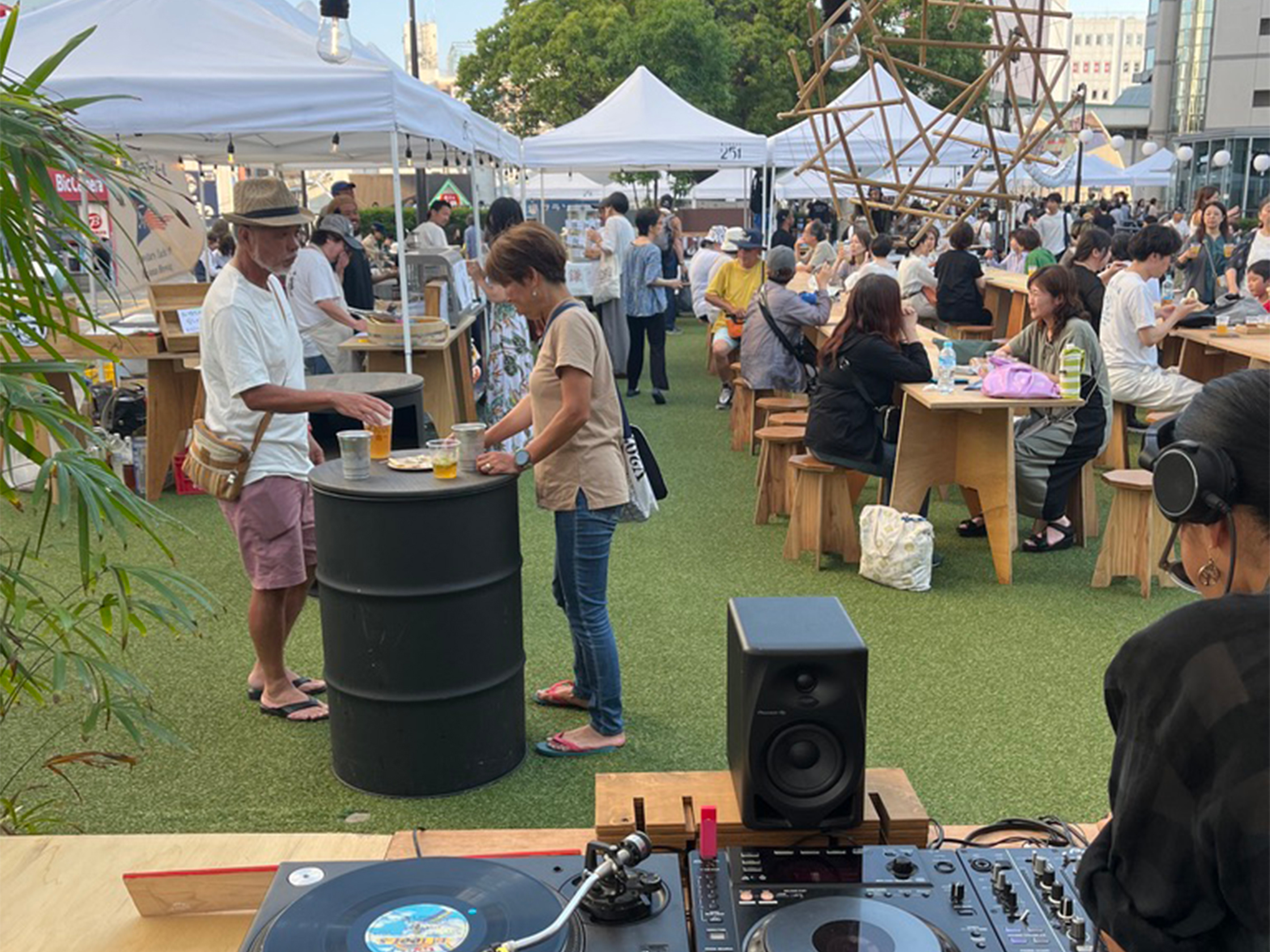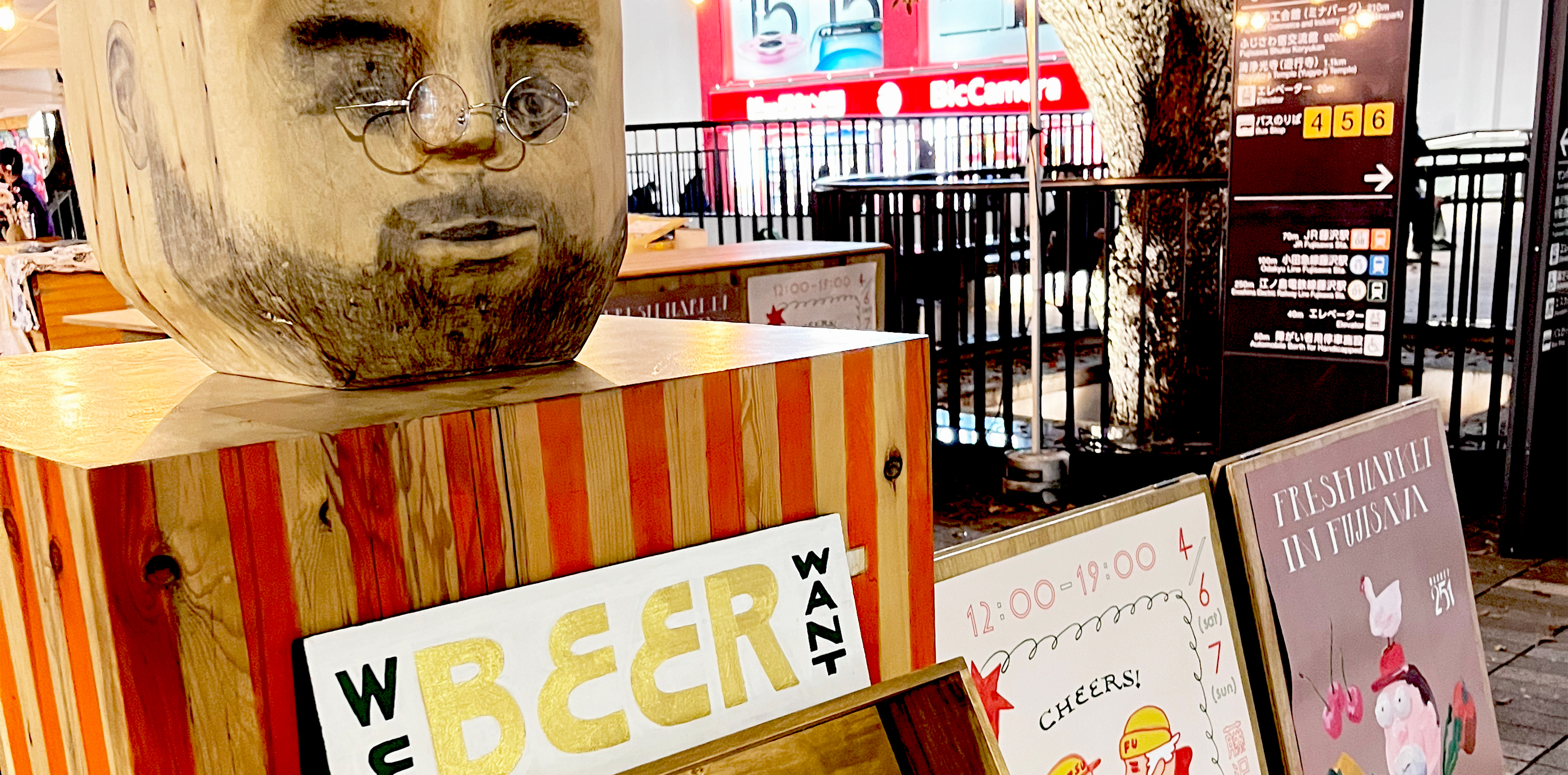 このイベントは、とにかく雰囲気がいい。駅前の広がりとか、空の抜け感とか、気持ち良さがある。他のイベントだと、広い駐車場でやることも多いけど、ここはそれとは違う。出店者の数と会場のサイズがちょうどいい。大きすぎるフェスだと、長い列の先にあるのが、事務所用のテーブルとかだったりする。そういうのって、ちょっと豊かさに欠けるなと思う。他のフェスは、出展者に縛りがない。ポップも看板も自由に貼れる。いわゆる“お行儀がいい”イベントじゃない。でも、角若松のフェスは、美意識はちゃんと保たれている。外に写真を掲げられなかったり、のぼりがNGだったり。その分、全体の見た目に統一感があるし、主催者がそこをちゃんと保っているのがすごい。それが出店者にも伝わっているし、出店者自身が大人として楽しんでいる。ギスギスしていない、余裕がある感じ。イベントでの僕らのスペースは、木のカウンターにビアサーバーを立てて、お店に来たみたいな雰囲気をつくっています。地元のお花屋さんに花も生けてもらっています。カウンターのスタッフが覆面してたこともあって、売れなかったこともある(笑)。うちの悪いところは、「入りにくい」って思われちゃうこと。でも、らしさを残しつつ、そこはこれから少しずつ変えていくつもりです。